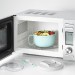 The lunch box itself is suitable for the microwave, but none of the other components are.
