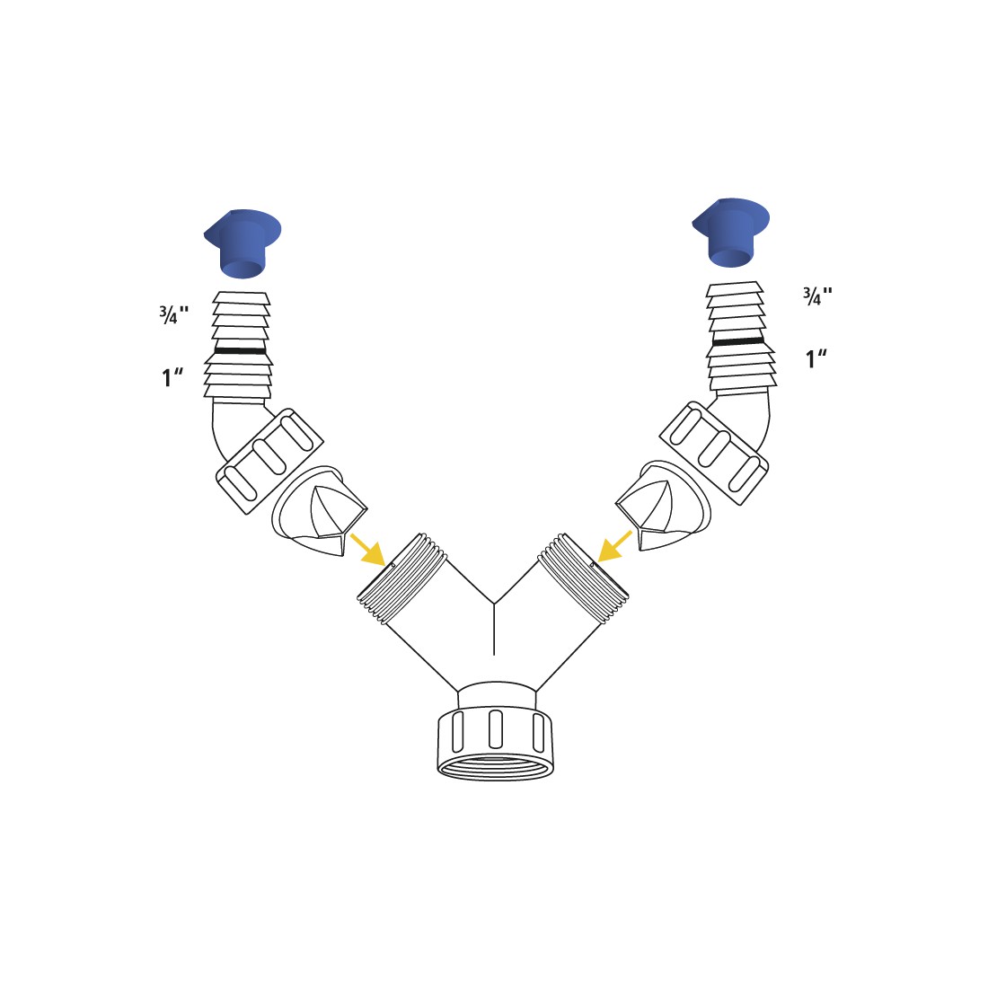 - 1 1"-Geräteanschlusstülle auf 2x 3/4" mit vormontierter Dichtung